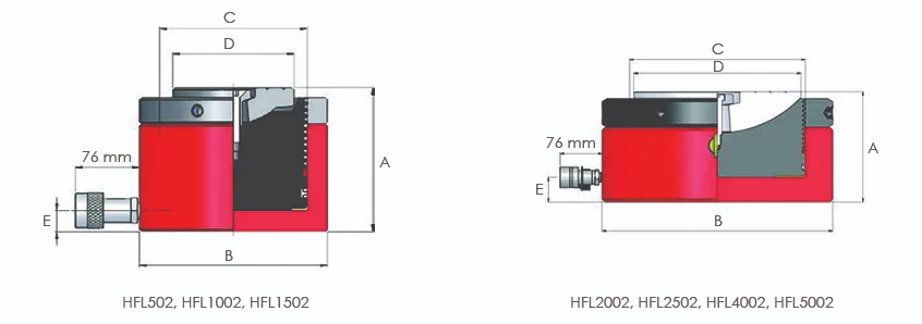 The HFL low height single acting failsafe lock ring cylinder range combines all the versatility and efficiency of hydraulic power with the safety of mechanical load support, offering a sustainable lifting force in very confined work areas. Ideally suited for applications requiring load holding for extended periods, such as bridge support work. The HFL range features a single acting load return piston, threaded throughout its stroke length to suit the threaded mechanical load holding lock ring. All models are suitable for vertical lifting only and are supplied with tilting saddles as standard.
