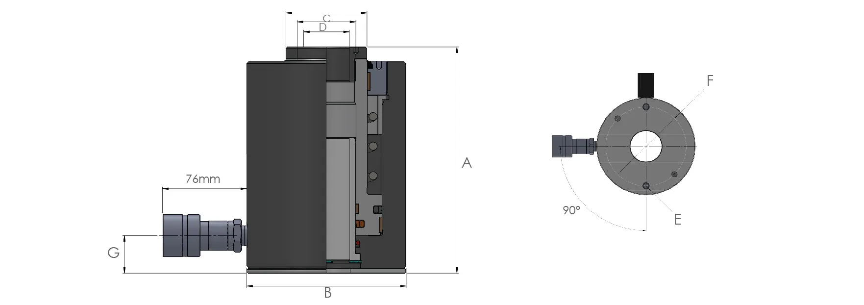 The HHA range of single acting hollow piston aluminum cylinders are specifically designed for applications where weight and ease of positioning are of prime importance. Similar in design to the HHS range, the HHA cylinder models have a hollow piston to enable a rod or cable to be passed through the entire cylinder length making it suitable for applications where a pulling force is required. All models are supplied with a hard anodised, wear resistant, piston rod and cylinder body and a steel cylinder base protection plate.